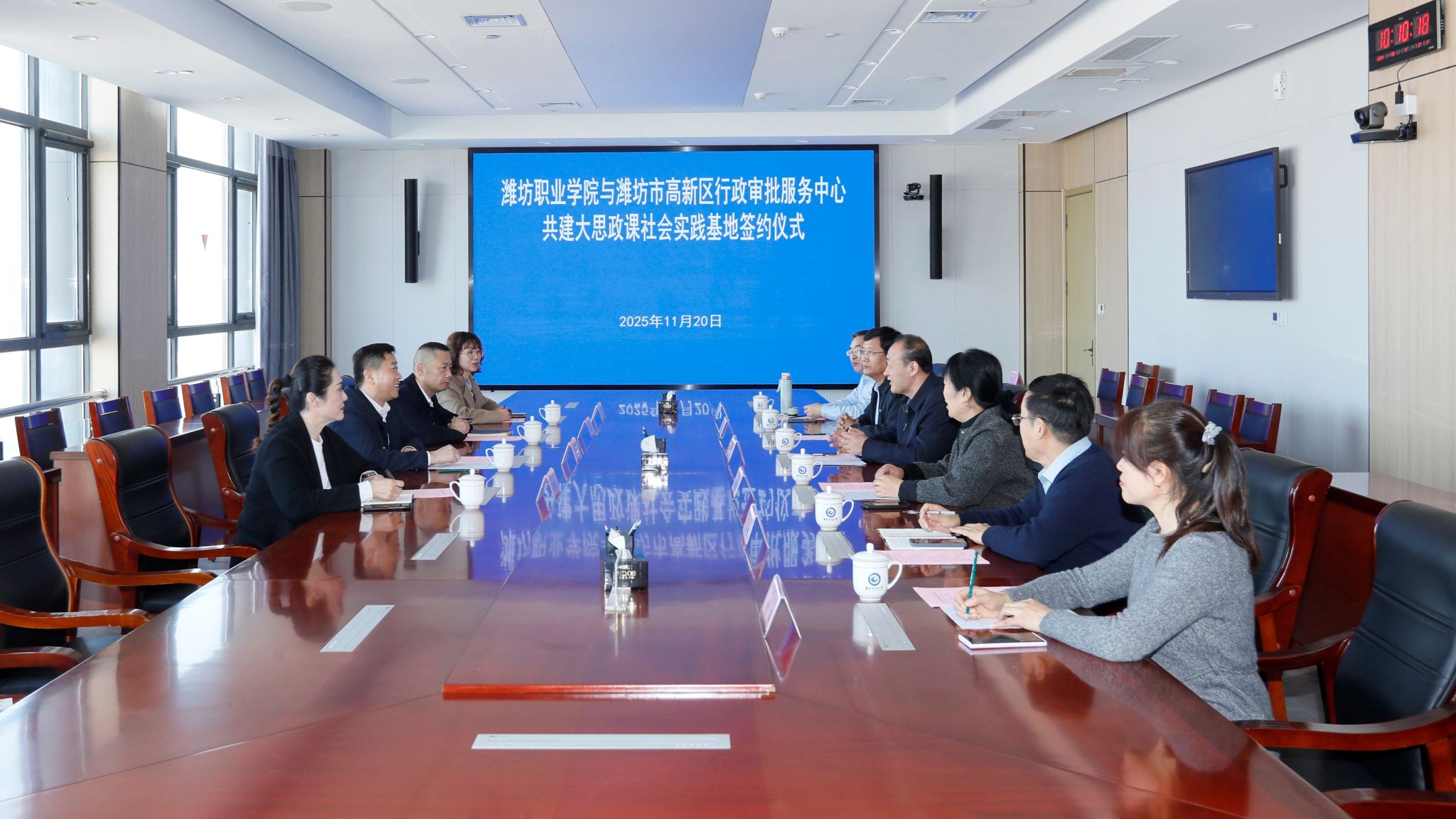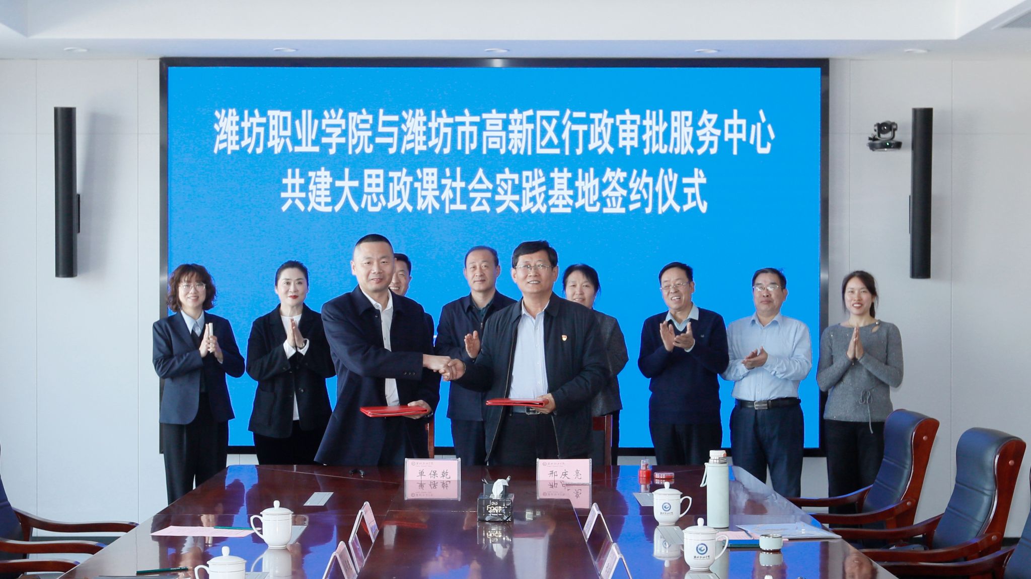 11月20日上午,学院与潍坊高新区行政审批服务中心共建大思政课社会实践基地签约仪式在滨海校区举行。学院党委委员、副院长赵宏坤,潍坊高新区行政审批服务中心主任、昌潍农校1994级校友陈传刚出席签约仪式,党委委员、宣传部部长鞠桂芹主持签约仪式。潍坊高新区行政审批服务中心副主任单保乾、永利集团88304负责同志及相关科室负责人参加活动。