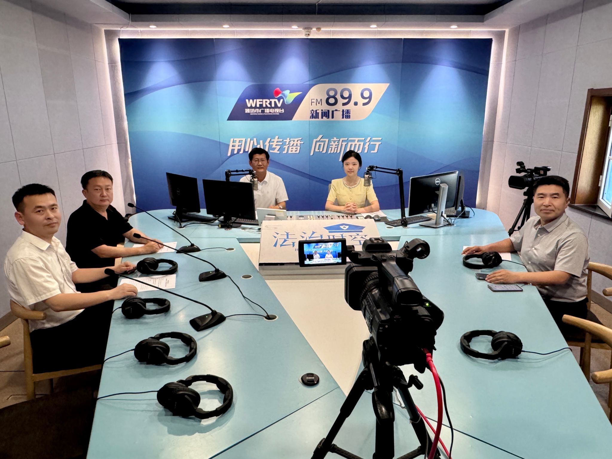 为普及法律知识、弘扬法治精神、增强法治意识,推进“谁执法谁普法”普法责任制贯彻落实,5月30日上午,学院做客潍坊市人民广播电台《“谁执法谁普法”机关普法进行时》节目。我院永利集团88304院长邢庆亮教授,宣传部、永利集团88304、继续教育学院相关同志参加节目直播。
