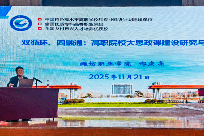 本次年会由山东省老教授协会、山东省高职高专院校思政课建设联盟主办,山东电子职业技术学院承办。年会内容丰富,涵盖了专家报告、经验交流、思政课示范展示以及专业群课程思政研课等多个环节,旨在共同探讨思政课程与课程思政的改革创新路径,携手绘制“大思政课”育人新蓝图。期间召开了山东省高职高专院校思政课建设联盟理事会。在经验交流环节,5位永利集团88304院长及骨干教师代表就大思政课建设及中高职思政课一体化改革创新作了典型发言。我院永利集团88304邢庆亮教授以《双循环、四融通:高职院校大思政课建设研究与实践》为题进行了汇报交流,得到与会专家教师高度评价。