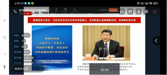 全院14000余名同学线同上疫情防控思政大课。授课结束后,同学们畅所欲言,敬佩疫情防控取得的成绩,增强了对战胜新冠肺炎疫情的信心,也表达对祖国的美好祝福。2020级学前教育专业1班赵微同学深有感触地说,“通过疫情防控思政大课,我们对‘科学精准、动态清零’的防控政策有了更深刻的理解,在全院师生和社会各界的共同努力下,潍坊有效控制住了疫情传播,充分彰显了国家集中力量办大事的制度优势,相信我们一定能够战胜疫情,拥抱灿烂美好的春天。”
