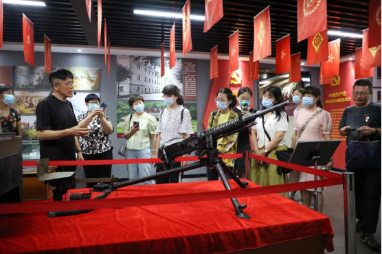 在昌邑全武红色文化博物馆,馆长王全武对馆藏进行了详细讲解。该馆以红色教育为主题,以历届党代会主线,建筑面积3000余平方米,分28个展厅,收藏着馆长历时20余年从国内外收集的领袖塑像、红色军品、侵华罪证、党史资料、领袖像章、红色票证等红色历史文物40000余件,这些革命文物让大家更直观、更富情感的感受中国共产党的百年历程,在行走间、互动中完成生动的党史学习,是干部群众学习党史珍贵鲜活的教材。