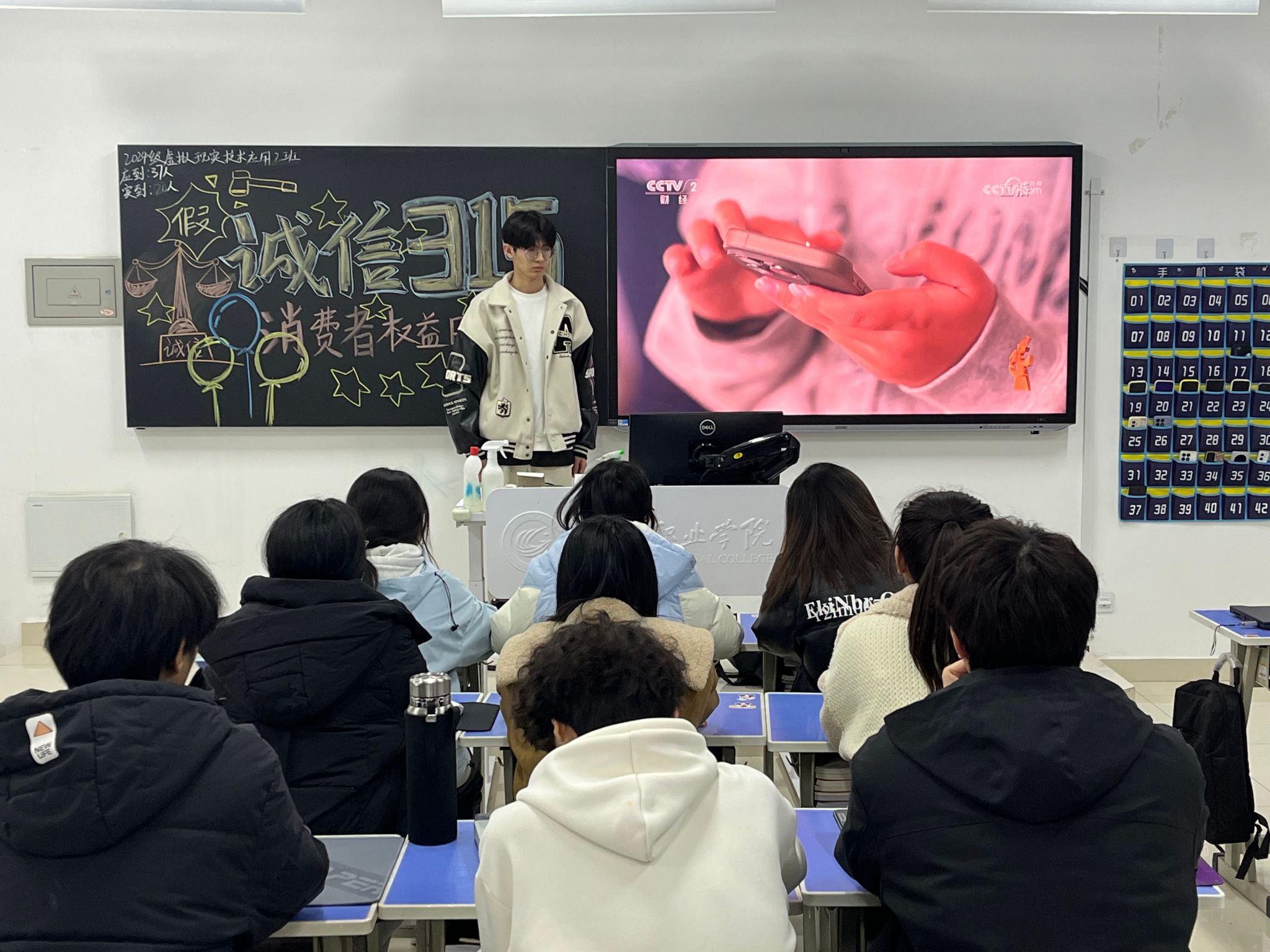 晚会聚焦“共铸诚信,提振消费”主题,对同学们进行了一场深刻的失信警示教育。晚会揭露了食品安全、公共安全、金融安全、数字经济等领域侵害消费者权益的违法行为,曝光了母婴用品残料翻新、一次性内裤徒手制作、“维修刺客”啄木鸟家庭维修等相关行业存在的消费陷阱和违法侵权行为,案例触目惊心。