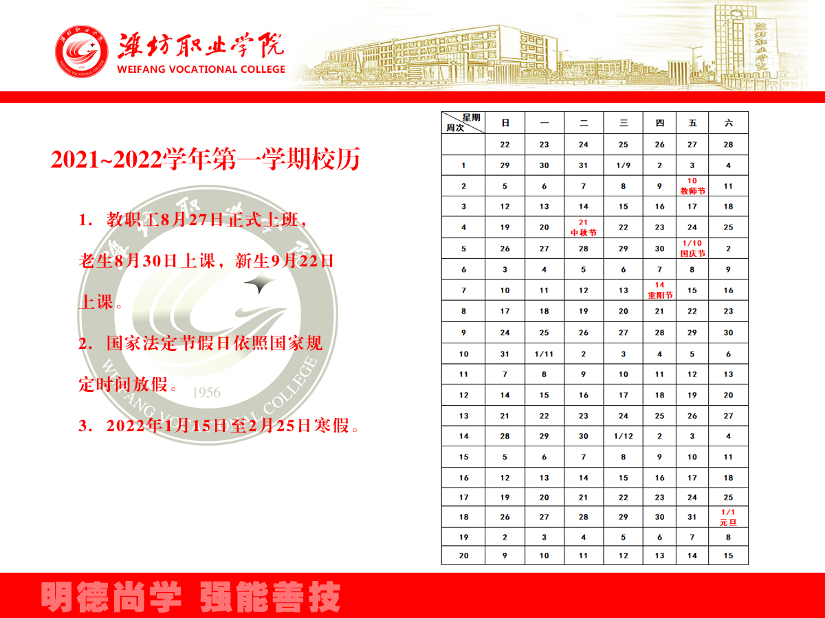2021-2022学年第一学期校历